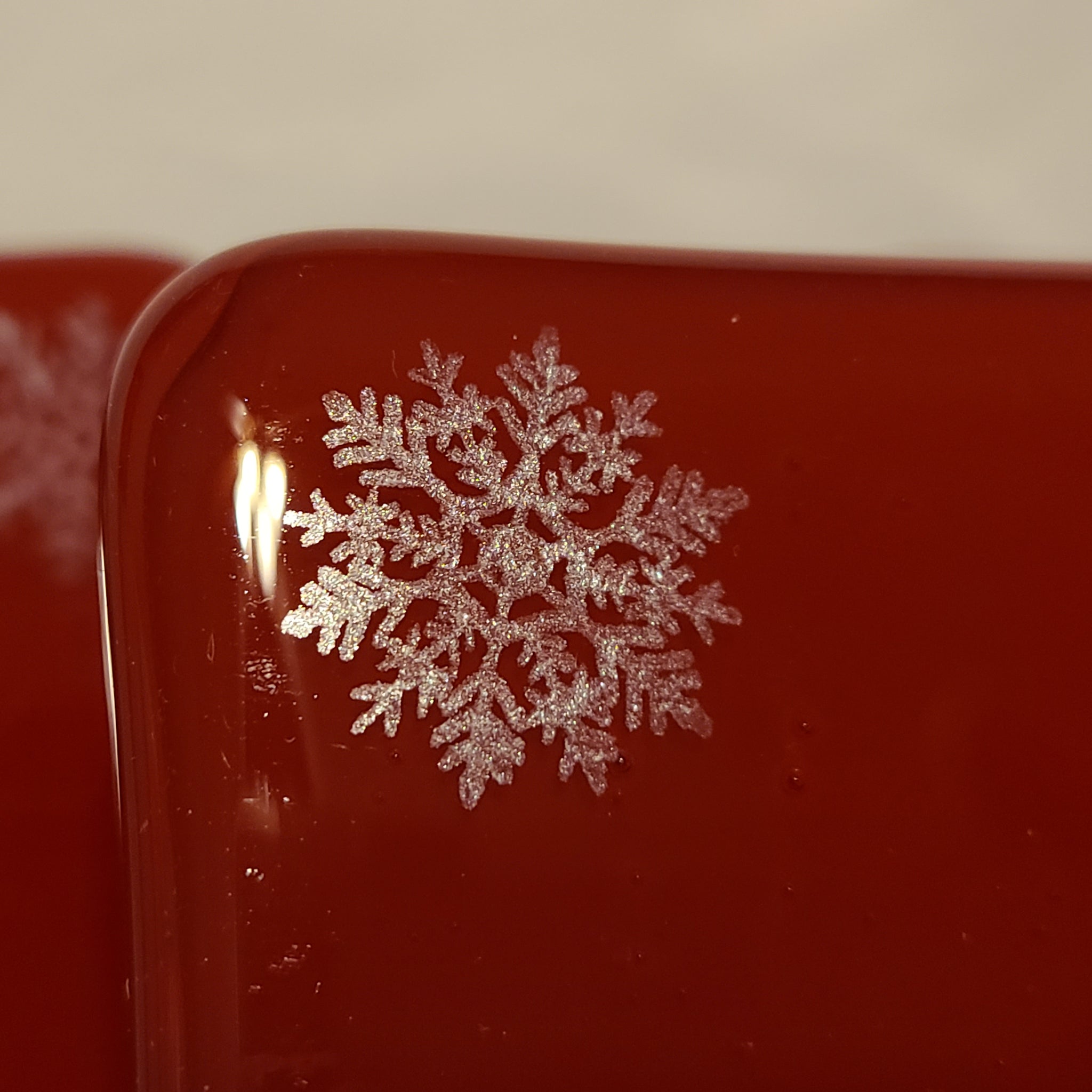 A festive touch for your holiday table! Each coaster has a different snowflake pattern. 4"x4".